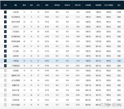 季后赛席位目前已敲定11席,除前4名之外,广东、浙江稠州、青岛、山东、辽宁、山西和宁波也都拿到季后赛席位。广东对浙江稠州的相互交锋占优,那么领先1个胜场的广东队排名落位第五,浙江稠州领先后面的球队2胜,常规赛排名落位第六。