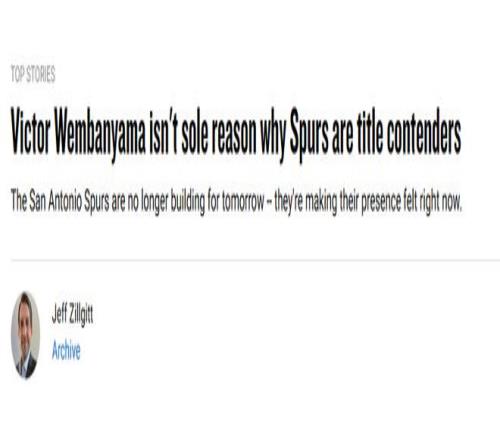 在年轻巨星文班亚马的带领下,马刺如今已是NBA战绩顶尖、状态最火热的球队。自1月2日以来,他们取得31胜9负的战绩,胜率高达77.5%,高居联盟第一,其中过去25场比赛更是狂揽23胜。